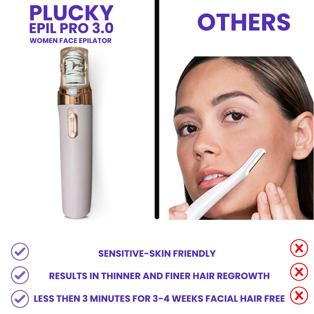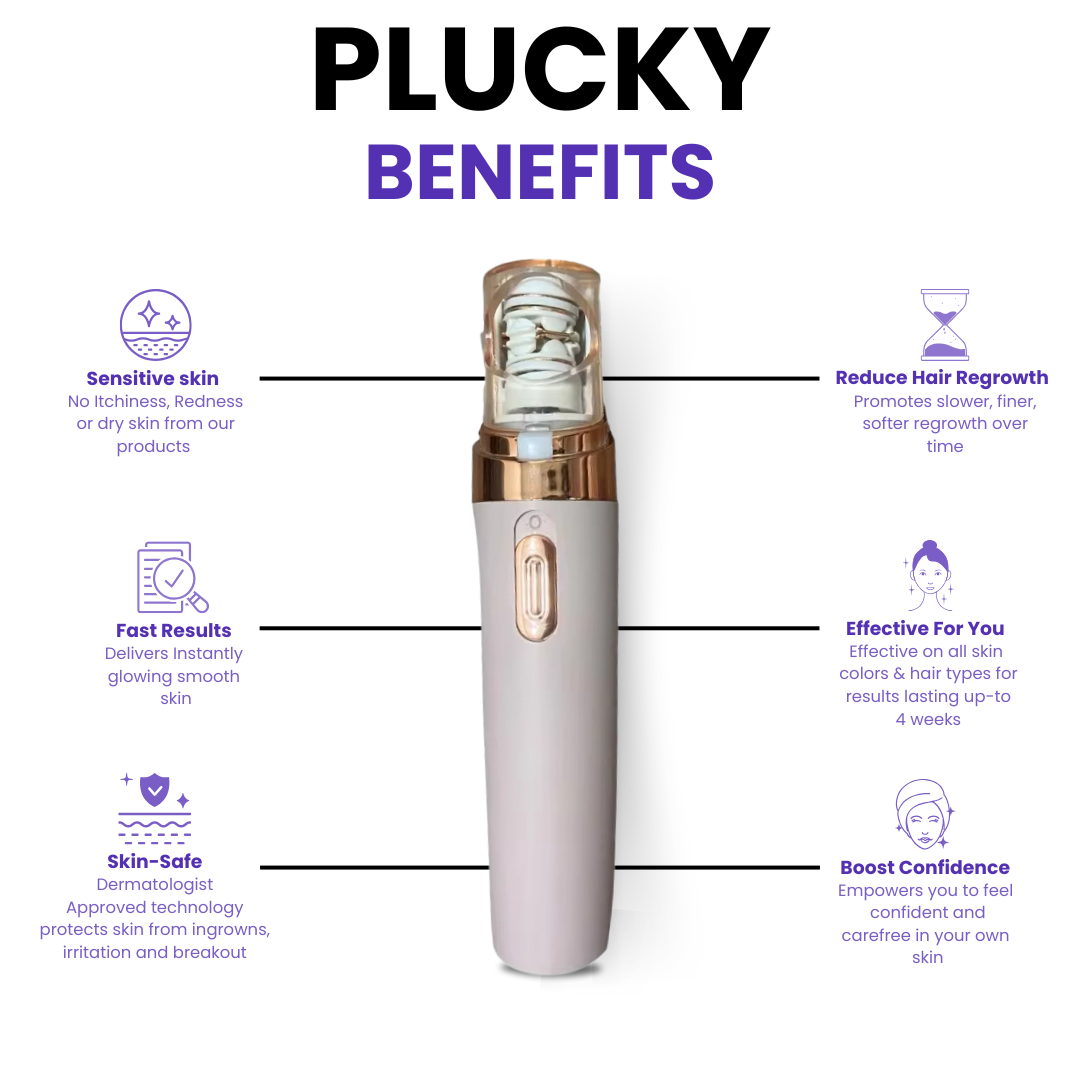 Meet Plucky, the easy way to remove facial hair! In just 3 minutes, it leaves your skin smooth and hair-free for weeks. It's simple to use, costs less than salon treatments, and saves you from shaving and waxing. Enjoy smooth, radiant skin with Plucky!